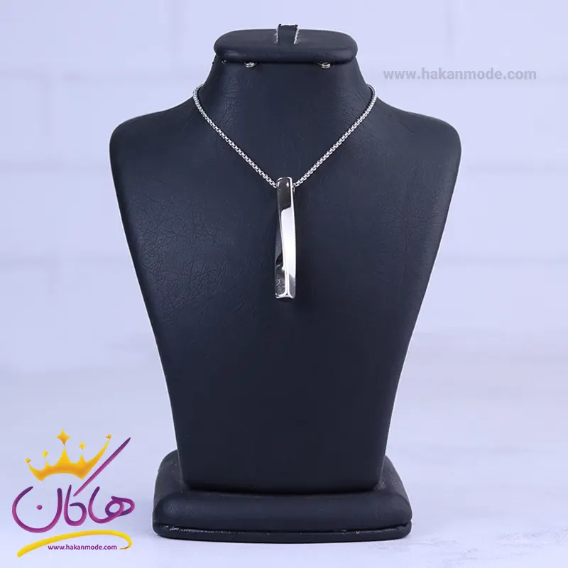 گردنبند نقره ای آویز مستطیل استنلس استیل ST 12343 از نمای کنار