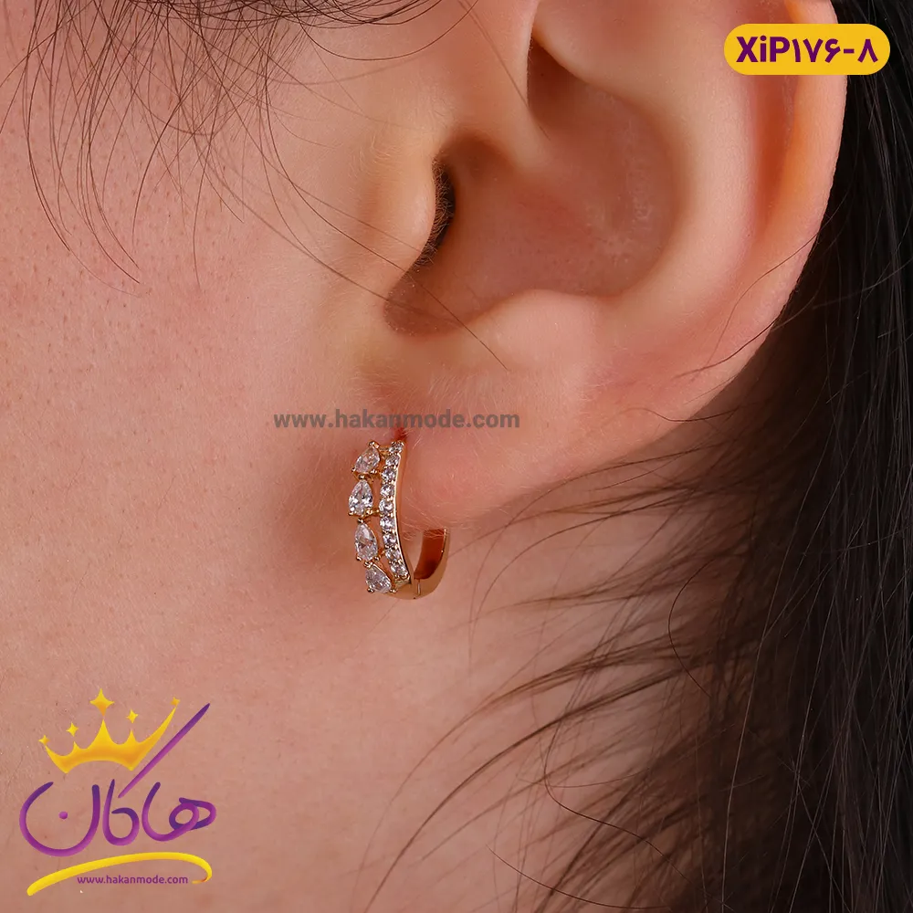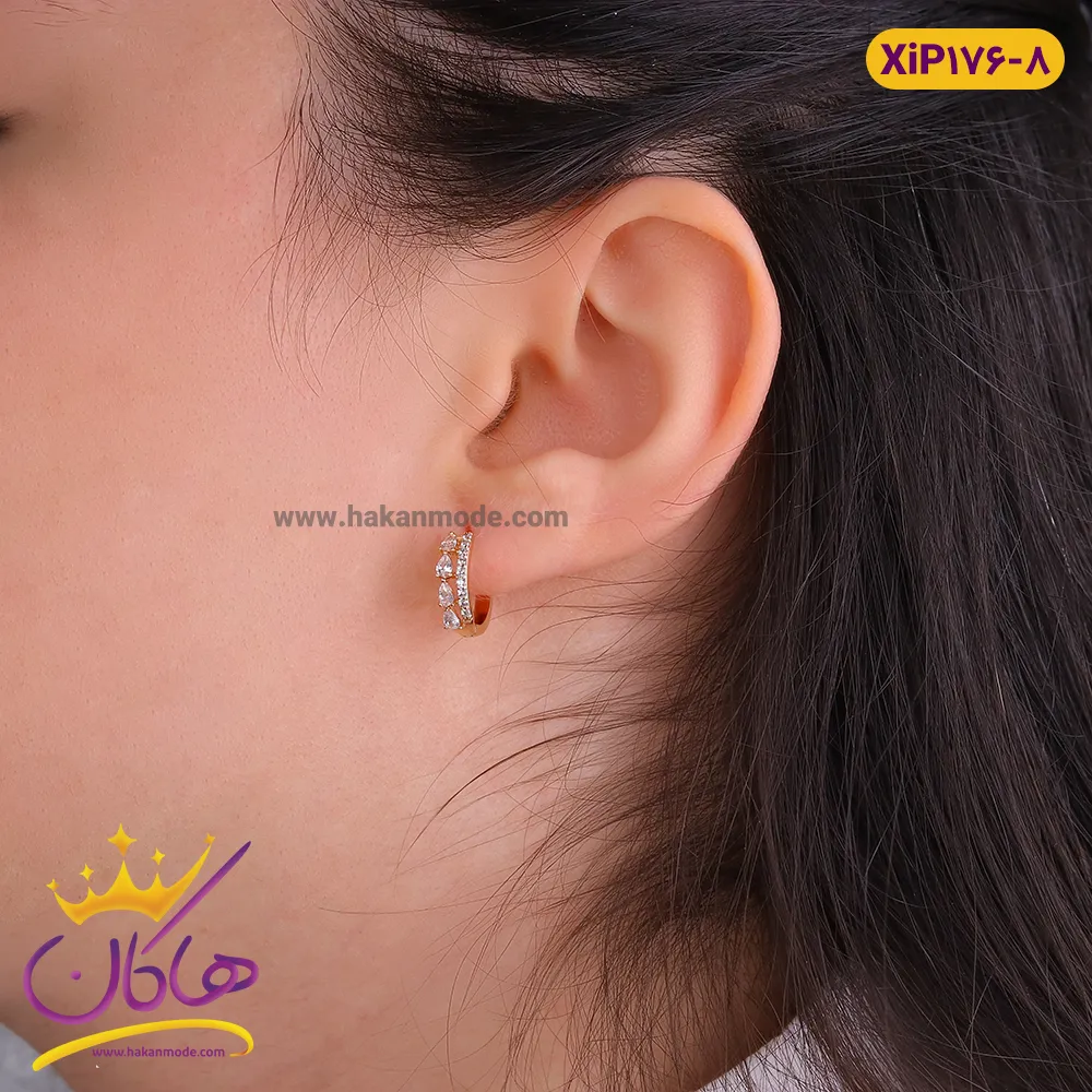 گوشواره حلقه ای گرد دو ردیف نگین ژوپینگ