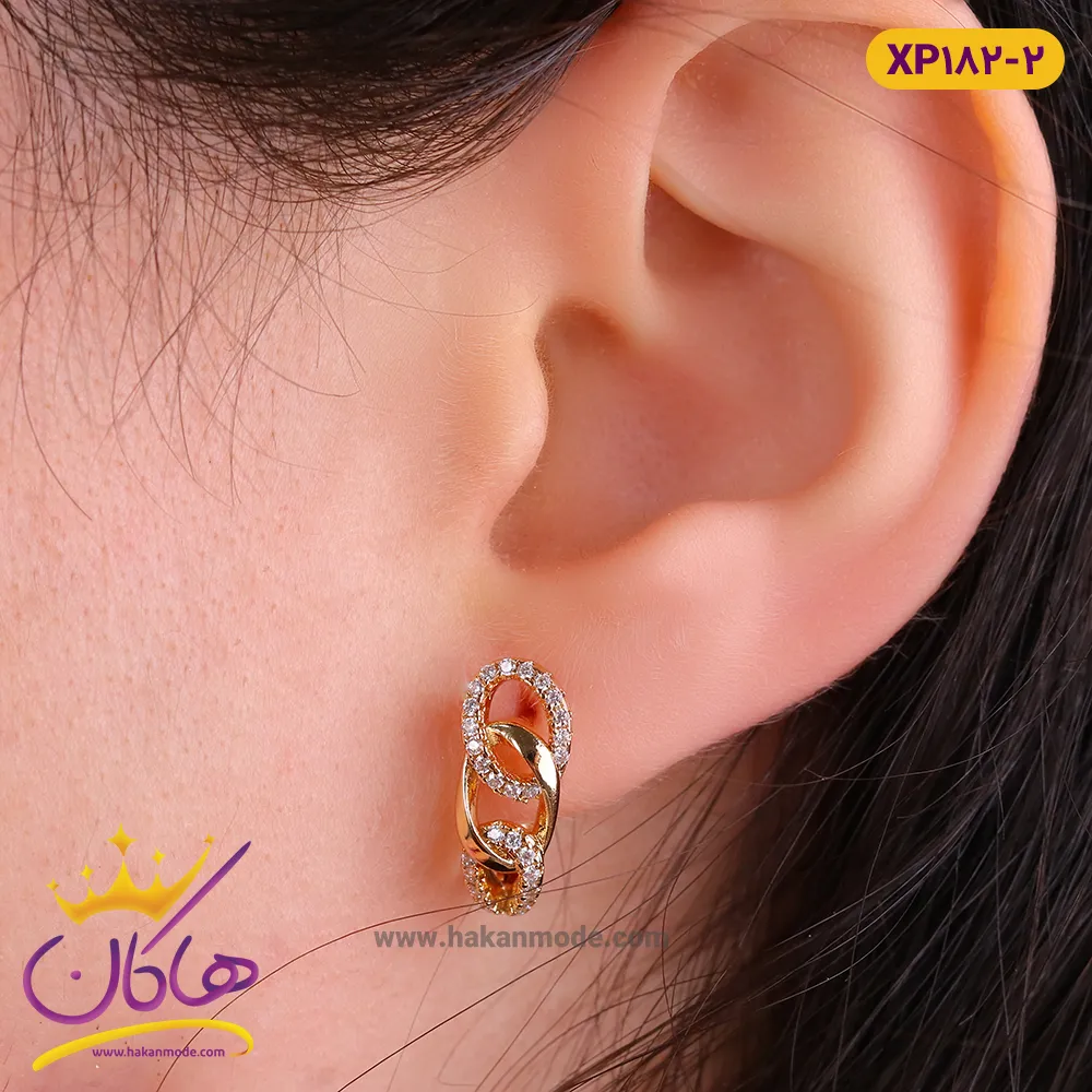 “name”: “گوشواره چفتی کارتیر نگین دار طرح زنجیر | کد Xuping XP 182/2”,