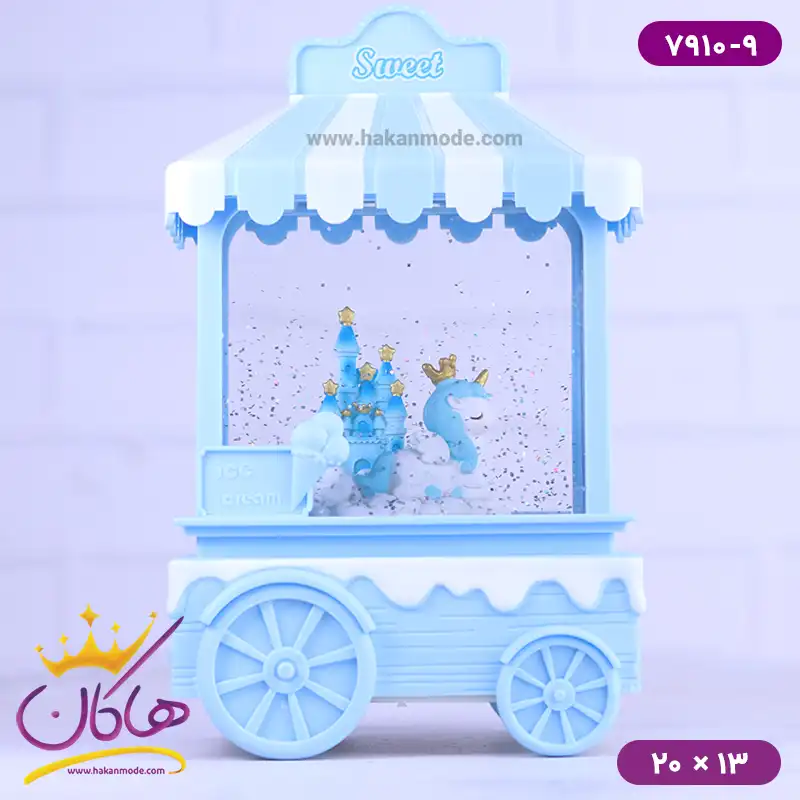 خرید گوی موزیکال کالسکه ای ماه و فرشته برای افرادی که علاقهمند به اشیا فانتزی هستند، بسیار جالب است و محدودیت سنی ندارد. این گوی از یک پایهی آبی رنگ و یک حباب گرد و شیشهای تشکیل شده است. این پایه روی یک استند طرح کالسکه قرار دارد و نقرهای رنگ است. درون این گوی یک مجسمهی فرشتهی بالدار میبینید که جلوی ماه ایستاده است. این گوی پمپی بوده و یک دکمه زیر پایهی گوی قرار دارد که با روشن کردن آن ذرات برفی درون حباب مثل دانه برف واقعی به حرکت در میآیند و زیبایی گوی را دو چندان میکند. این گوی هم موزیکال است و هم چراغدار است. این گوی 7 عدد موزیک متفاوت و ۷ رنگ چراغ متفاوت دارد که پیوسته هستند.