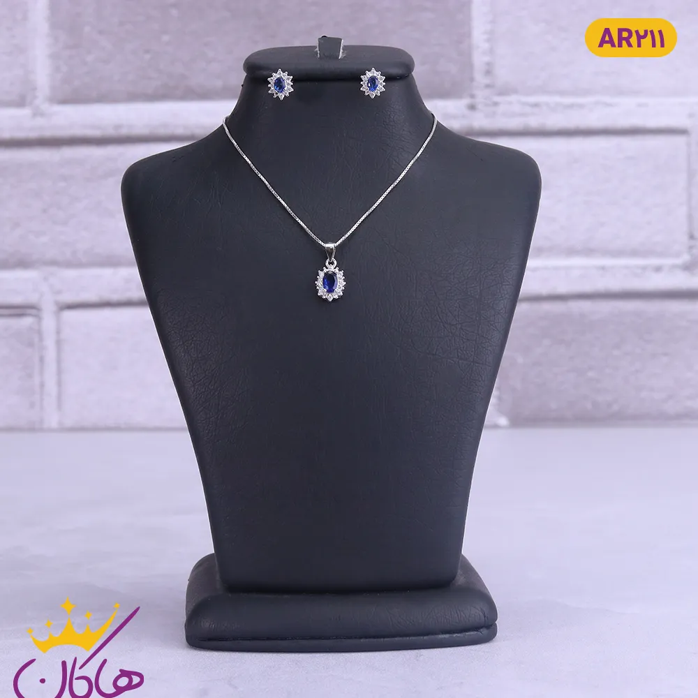 نیم ست نقره خورشیدی بیضی نگین آبی | AR 211
